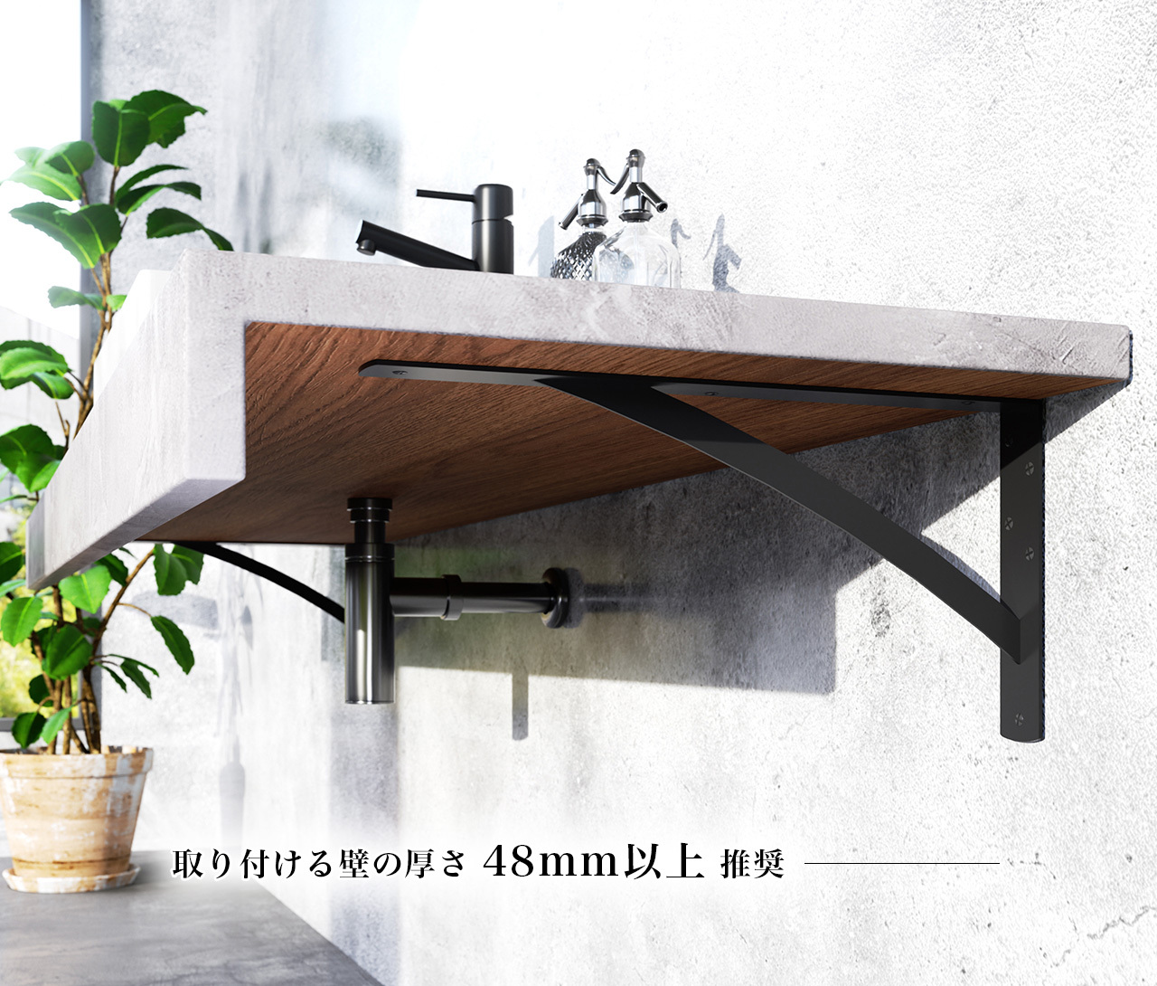 ※取り付ける壁の厚さは合板48mm以上推奨