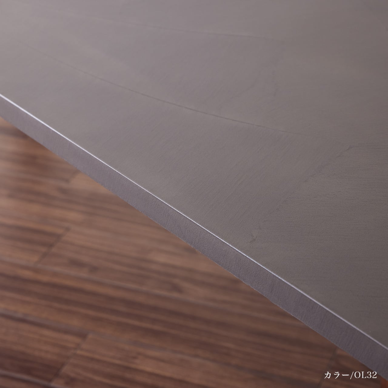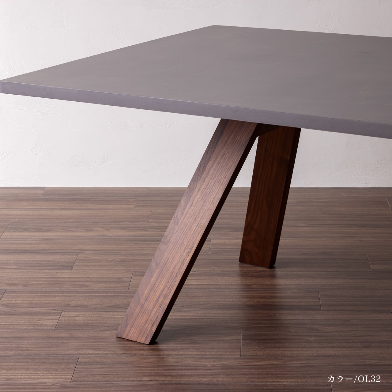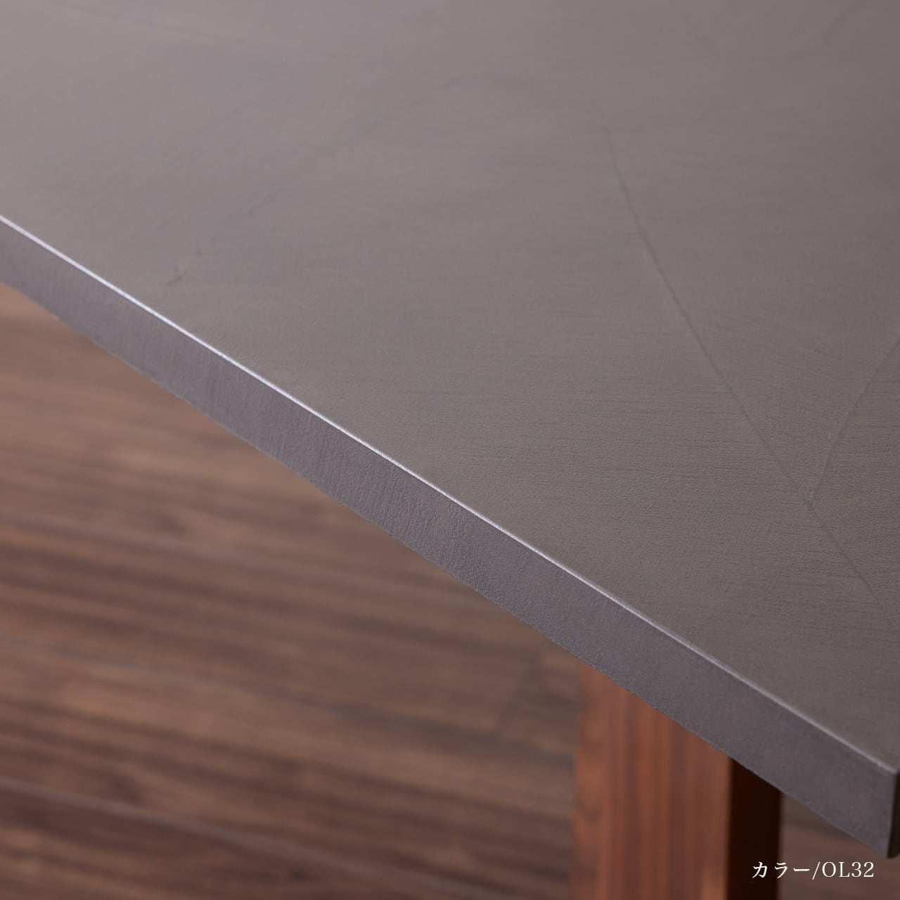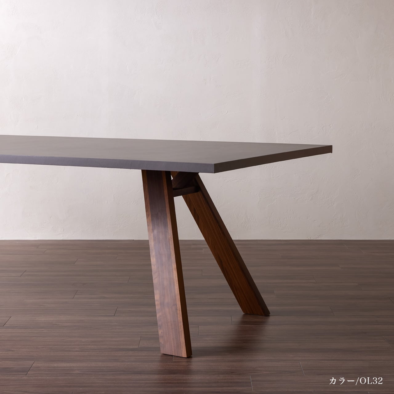 カラー30色から選べる、発色がよくシャープなコテ波の表情が特徴のOLTREMATERIAにて仕上げた天板と木脚を組み合わせた、シンプルモダンなデザインのテーブルです。