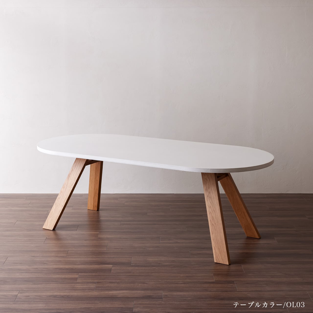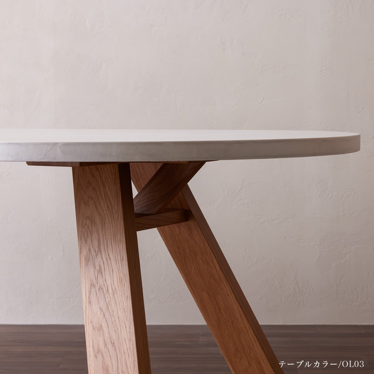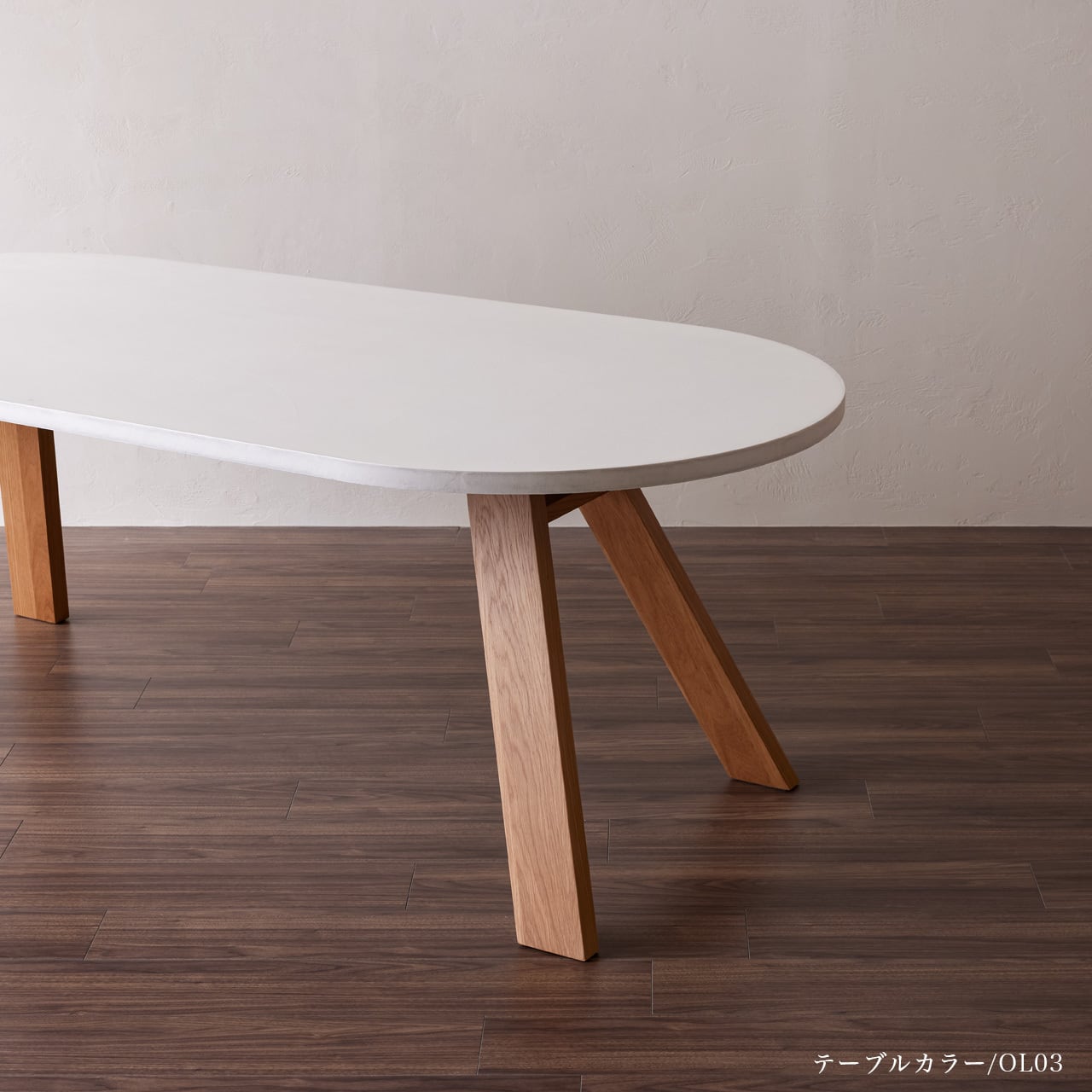 カラー30色から選べる、発色がよくシャープなコテ波の表情が特徴のOLTREMATERIAにて仕上げた天板と木脚を組み合わせた、シンプルモダンなデザインのテーブルです。