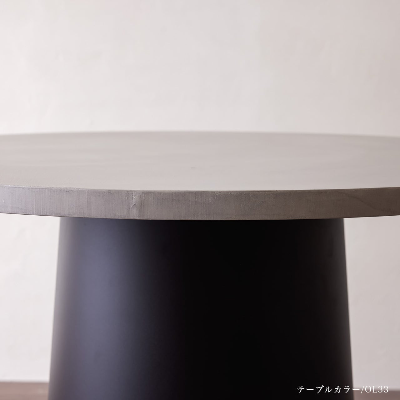 カラー30色から選べる、発色がよくシャープなコテ波の表情が特徴のOLTREMATERIAにて仕上げた天板と、3脚から選べる、木製脚を組み合わせた、シンプルモダンなデザインのテーブルです。