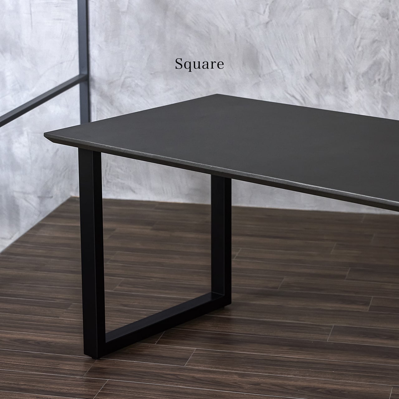 カラー30色から選べる、発色がよくシャープなコテ波の表情が特徴のOLTREMATERIAにて仕上げた天板と、5脚から選べる、マットブラックの鉄脚を組み合わせた、シンプルモダンなデザインのテーブルです。